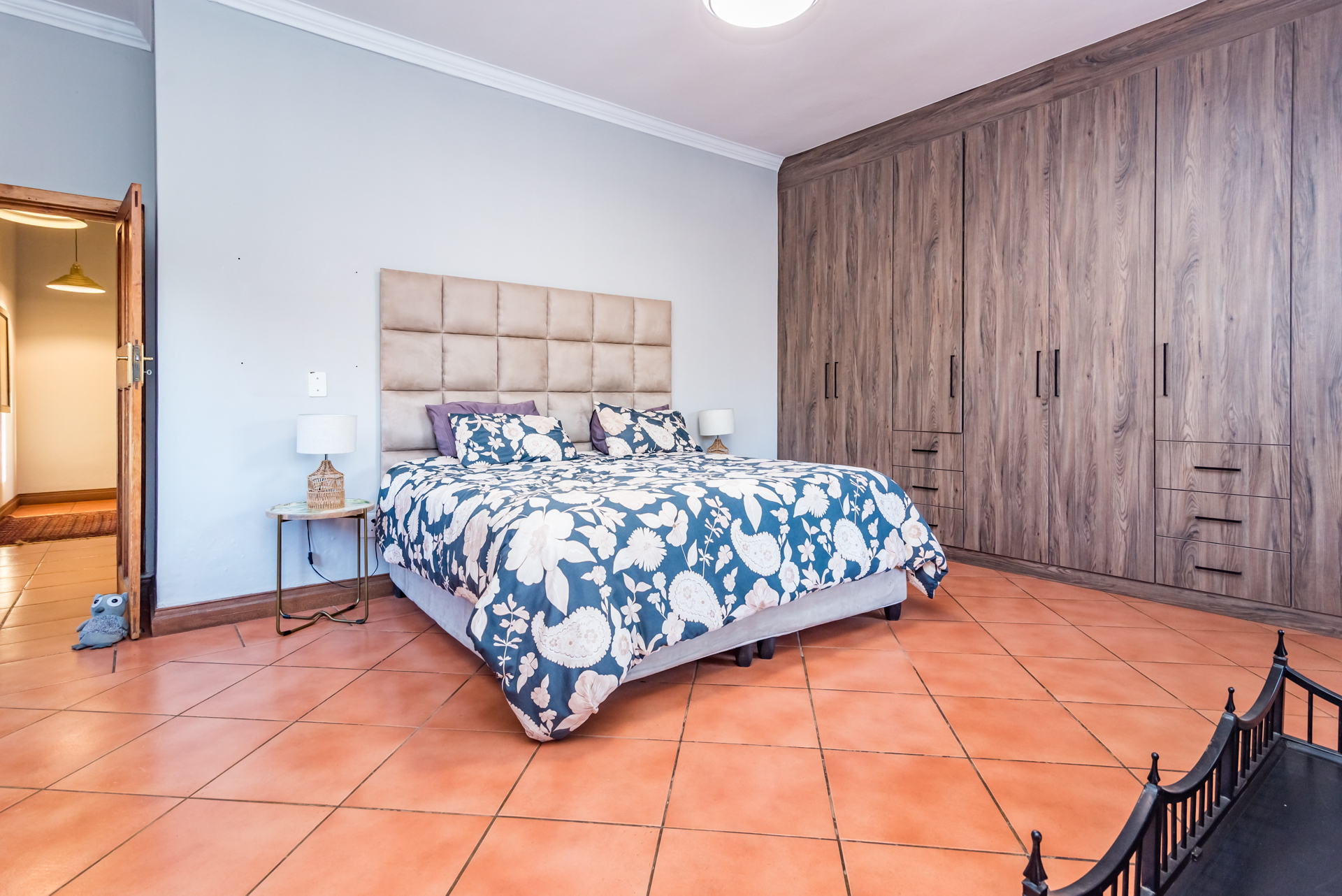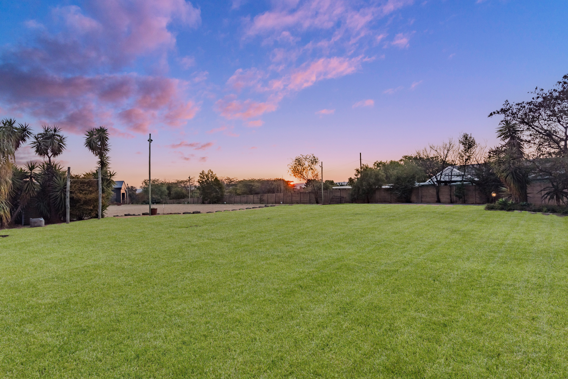 This single-level jewel in the one and only Mooikloof is tucked away behind trees securing extra privacy for the family who love entertainment and outdoor living - offering a dedicated separate entertainment room with an indoor braai and outside boma overlooking a sparkling swimming pool and rolling lawns. Featuring a seamless indoor – outdoor flow for year-round enjoyment. Further offering 4 spacious bedrooms, 3 bathrooms, 2 living rooms, study, a bigger than normal self-contained flat with 2 bedrooms, a living room and a huge open-plan kitchen; 3 garages, 4 well maintained stables, tack and feeding room and dressage – a horse lover’s paradise.