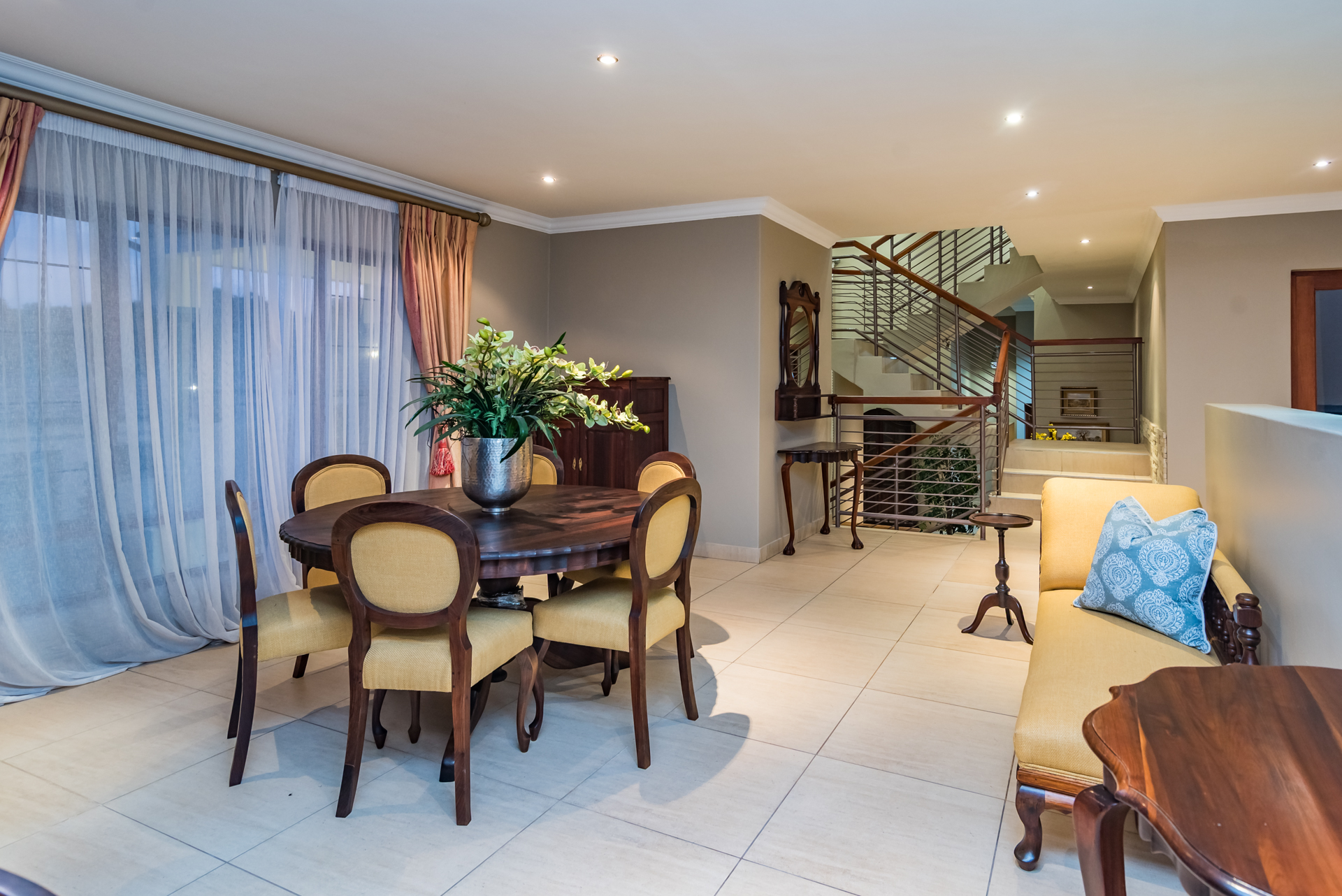 The double volume porte-cochere, together with the double volume sweeping staircase invite you to a luxurious world where entertaining is the keyword – i.e. the bar and pool room, exquisite wine cellar, cigar room, executive study/boardroom, separate entertaining building featuring a boma with its own bar, kitchen and spectacular views over the countryside.
