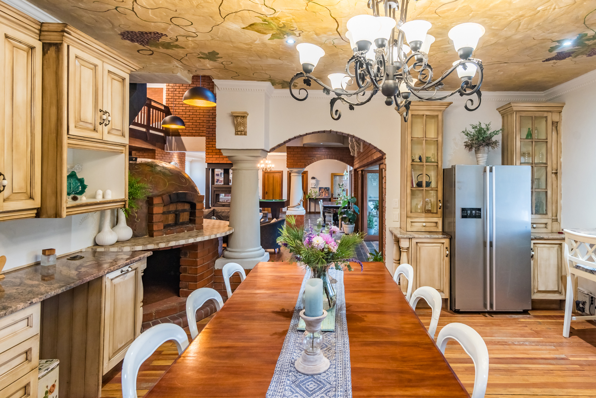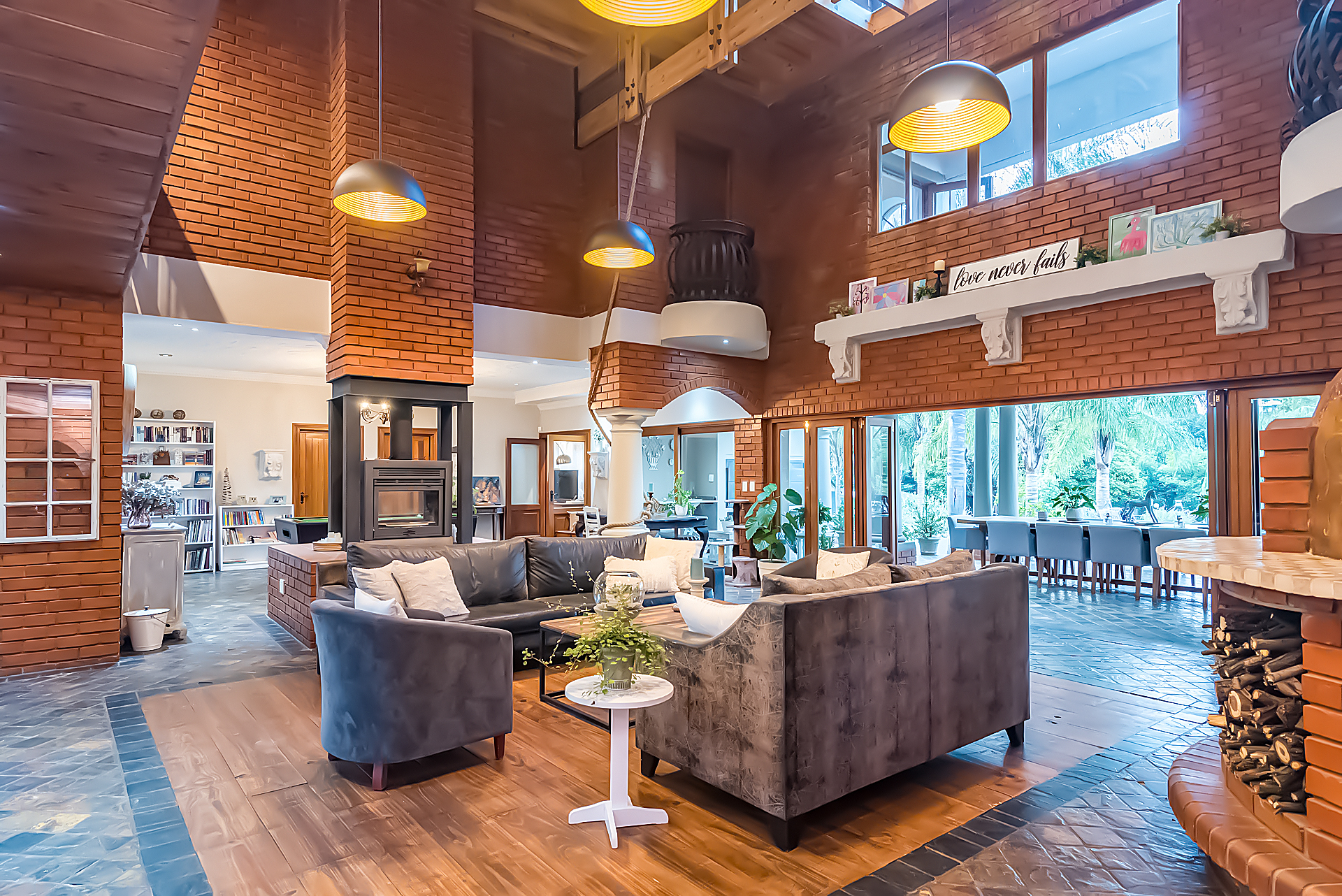 Also featuring: 2 studies, gym, 4 living rooms, scullery, laundry, huge pantry, 3 garages, large carport, 2 staff quarters, 4stables, a strong borehole, solar system – almost off the grid.