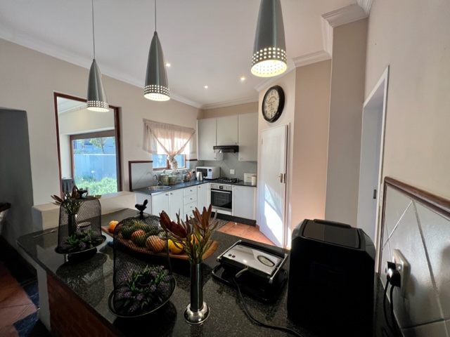 Open-plan living room with built-in braai. Boma area outside to enjoy the absolute peace and serenity this place has to offer complemented by a gorgeous garden.