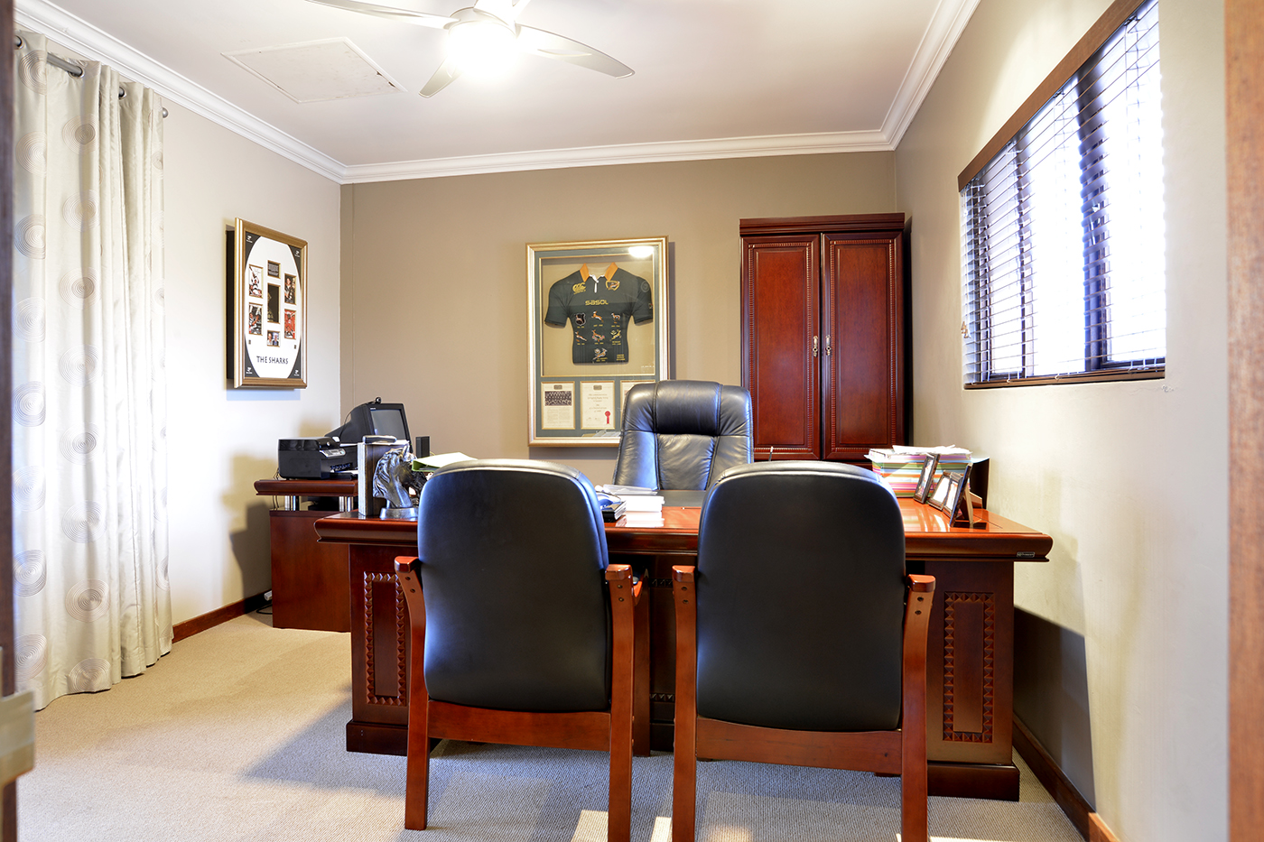 Additional features include: 3 garages plus extra space for a small car or trailer, 1 staff quarter, strong borehole, JoJo tanks with water connected to the house, generator.