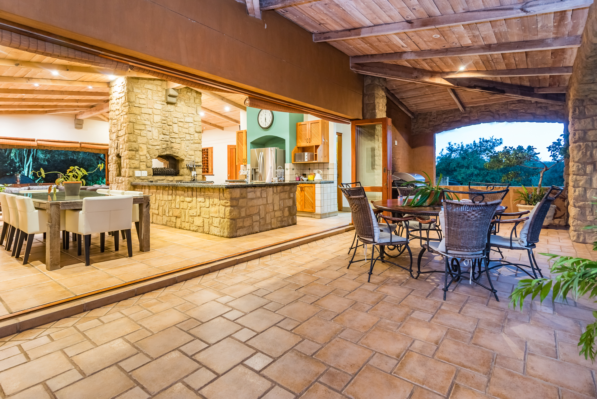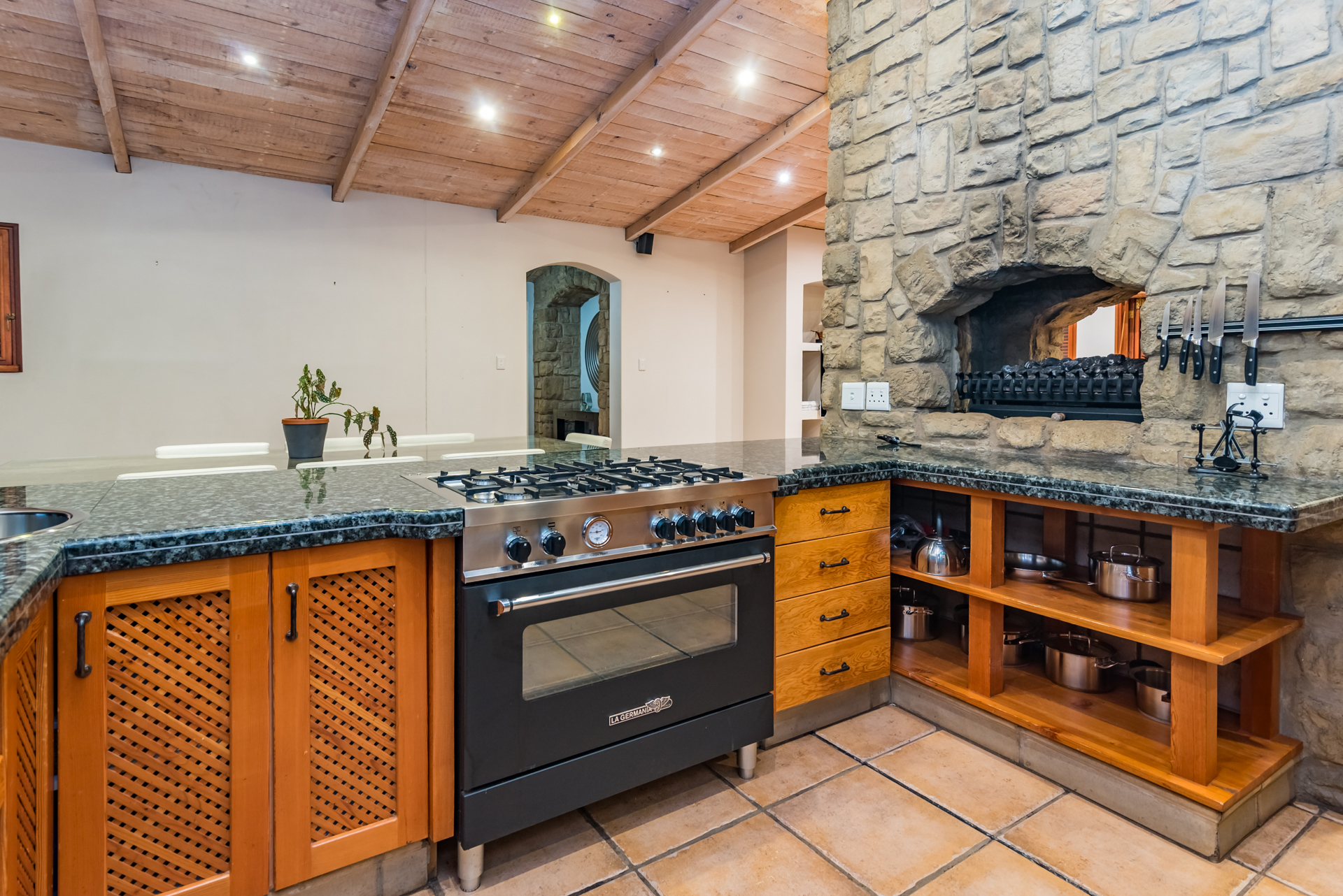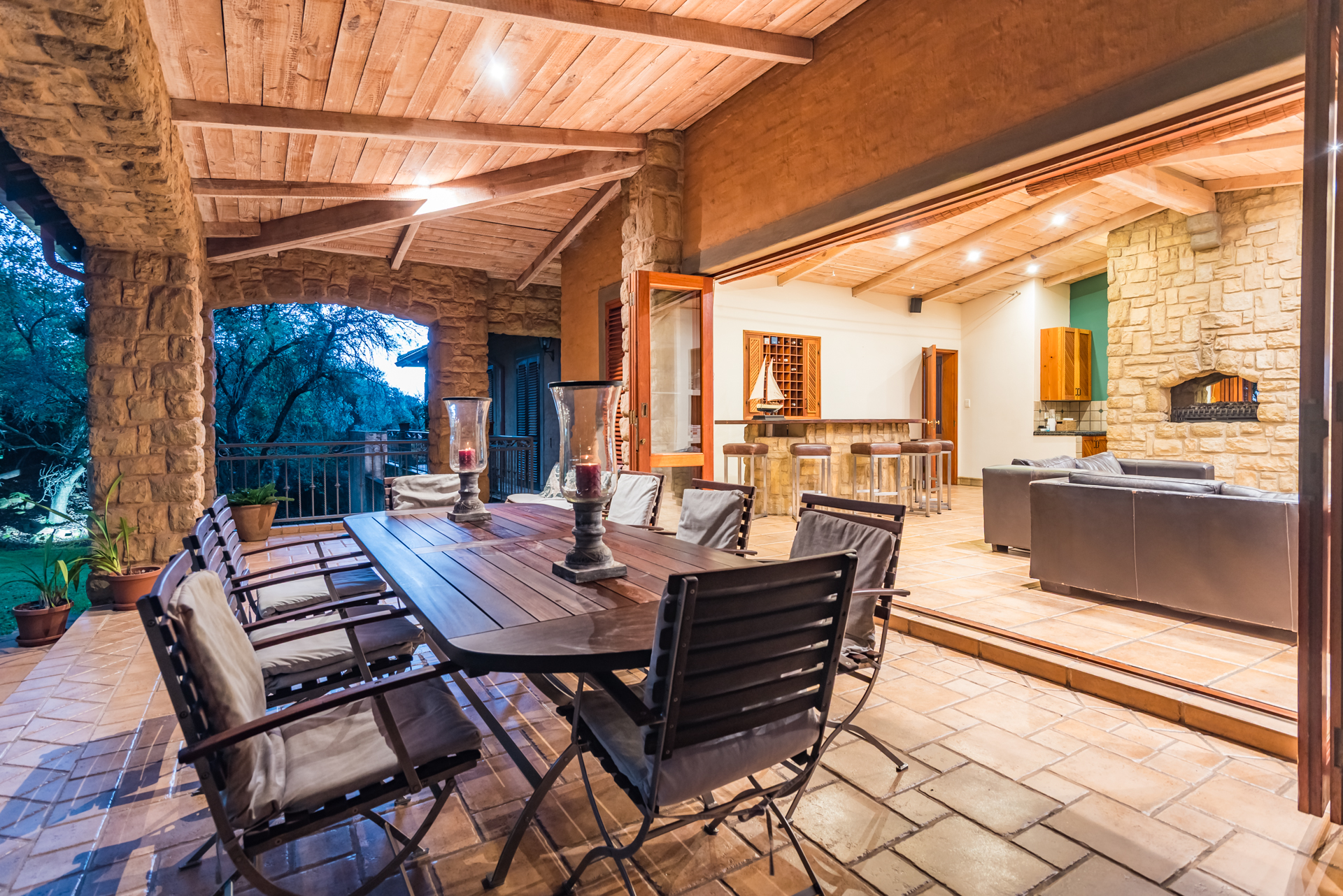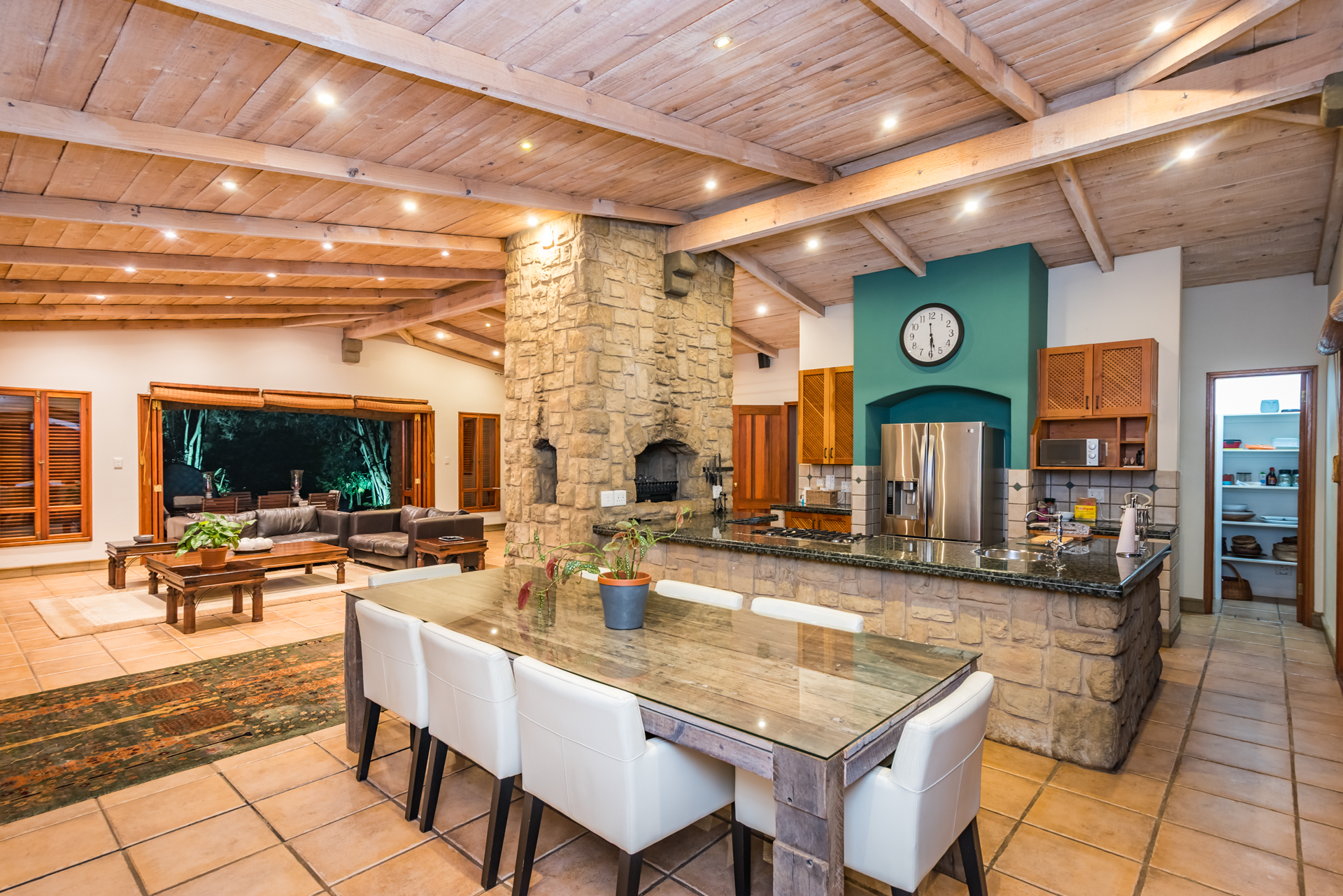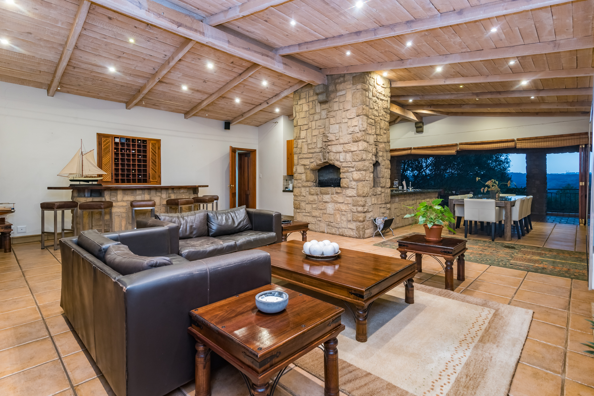Amodern farmhouse well positioned in the one and only Mooikloof EquestrianEstate. This amazing single-level country home is a perfect example where ruralmeets urban with an effective synergy between rustic charm and modern chic.Mostly north-facing with an abundance of light, this open-plan single-levelhome with the most gorgeous kitchen with a fireplace in the centre betweenkitchen and living rooms forming the centre of the home, will soothe your soulafter a hard day’s work. The superbly designed entertainment area with pool andundercover braai / patio becomes one with nature, capturing a sense of innerpeace that you will only feel in the bushveld. From the other patio you willafford amazing views over the entire tree-like stand and country side. Thiscountry home is unique and different. This home full of character and charmalso boasts a separate laundry and scullery, 4 garages and 2 carports, staffaccommodation, battery and inverter system as well as a generator.